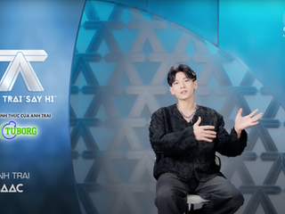 This is the main set design for the popular show 'Anh trai say hi.' With a futuristic style and the logo as the focal point of the space, all the participants will gather here to discuss what happened on the reality TV show